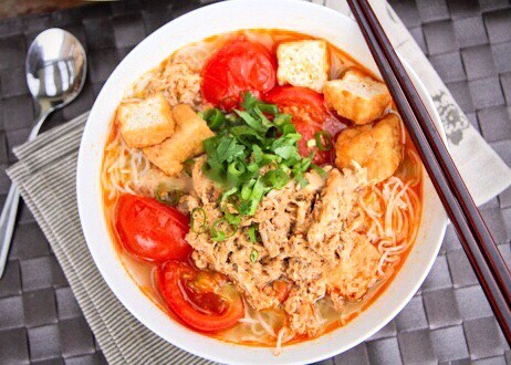 Linda : My favorite Vietnamese cuisine at the moment is Bún Riêu, which is a type of rice noodle soup. It is a tomato broth with crab favor base, containing rice vermicelli and topped with minced crab, fried tofu, fish balls, bean sprouts, spear mints, other vegetables, etc. But you could add the toppings to your liking really. There’s no limit. It has a fresh sour and slightly sweet taste. Just be careful if you’re wearing white or light color clothes because the soup can leave stains.