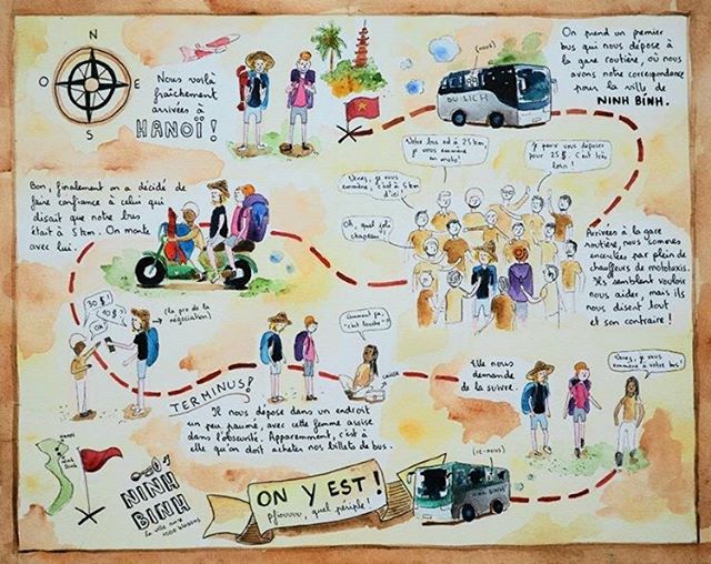 [French] Le voyage qui m’a le plus marqué est celui que j’ai fait en Asie du Sud-Est il y a maintenant presque deux ans. Avec une amie, nous avons fait le Cambodge, la Thaïlande, la Malaisie et le Vietnam, le tout en 4 mois. C’était magnifique et j’en garde de très beaux souvenirs. Ce que j’ai beaucoup apprécié, c’est d’avoir beaucoup de temps pour l’improvisation : ça crée des situations mémorables, inattendues, parfois même surprenantes. Et il n’y a rien de mieux pour avoir des choses inédites à raconter à travers mes illustrations 🙂