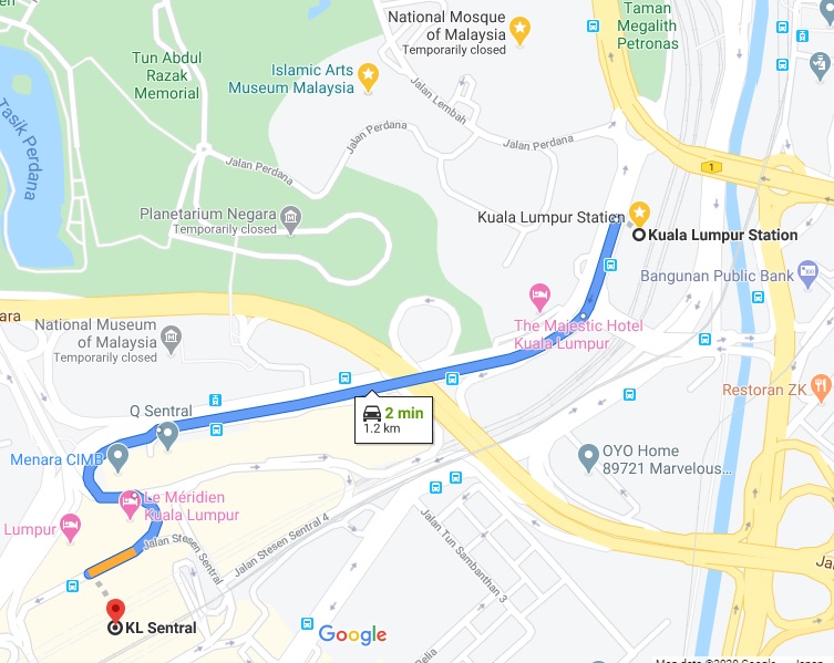 KL Central has a direct express train from KLIA. About 1 mile from KL Central to KL Railway Station.