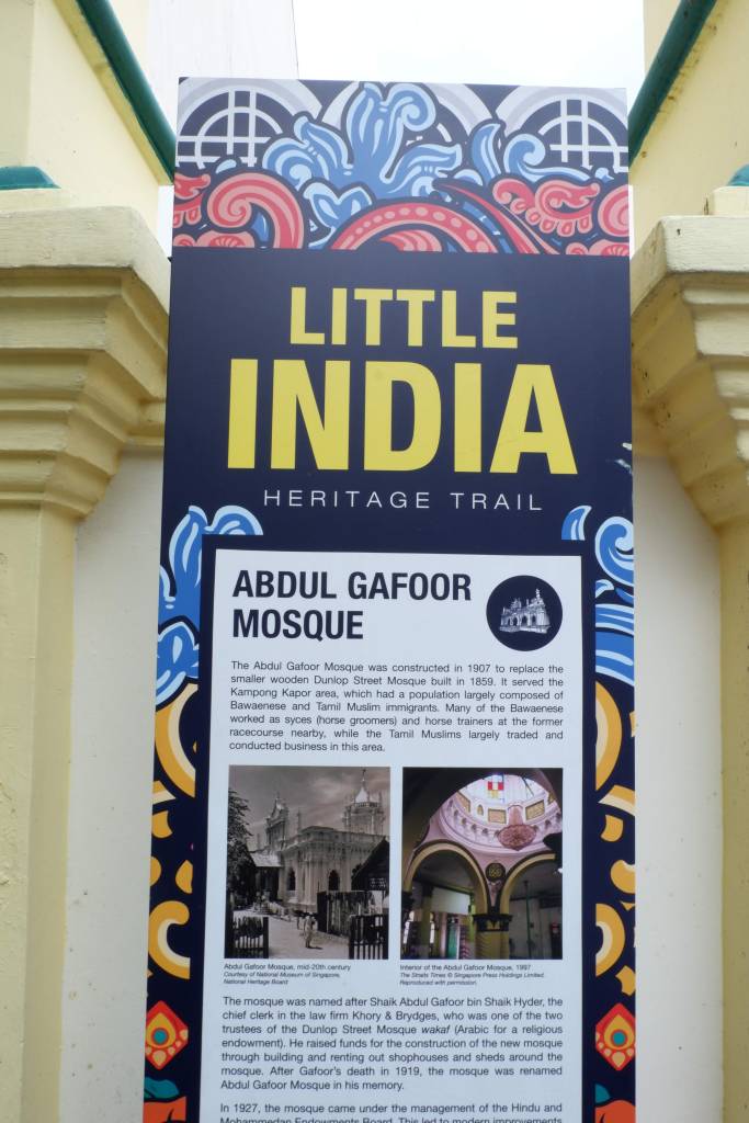 Abdul Gafoor Mosque, located in Little India, is an aesthetically pleasing mosque distinguished by its cream and green colors, adorned with stars and a moon. Visitors can explore the mosque’s interior while being respectful of the worshippers present. It’s important to dress modestly, avoiding clothing that exposes skin. Additionally, visitors can enjoy snacks at the restaurant across from the mosque, where the southern Indian flatbread known as prata is highly recommended for its delicious taste. For more details, a video link is provided for further insights into the mosque and its surroundings.