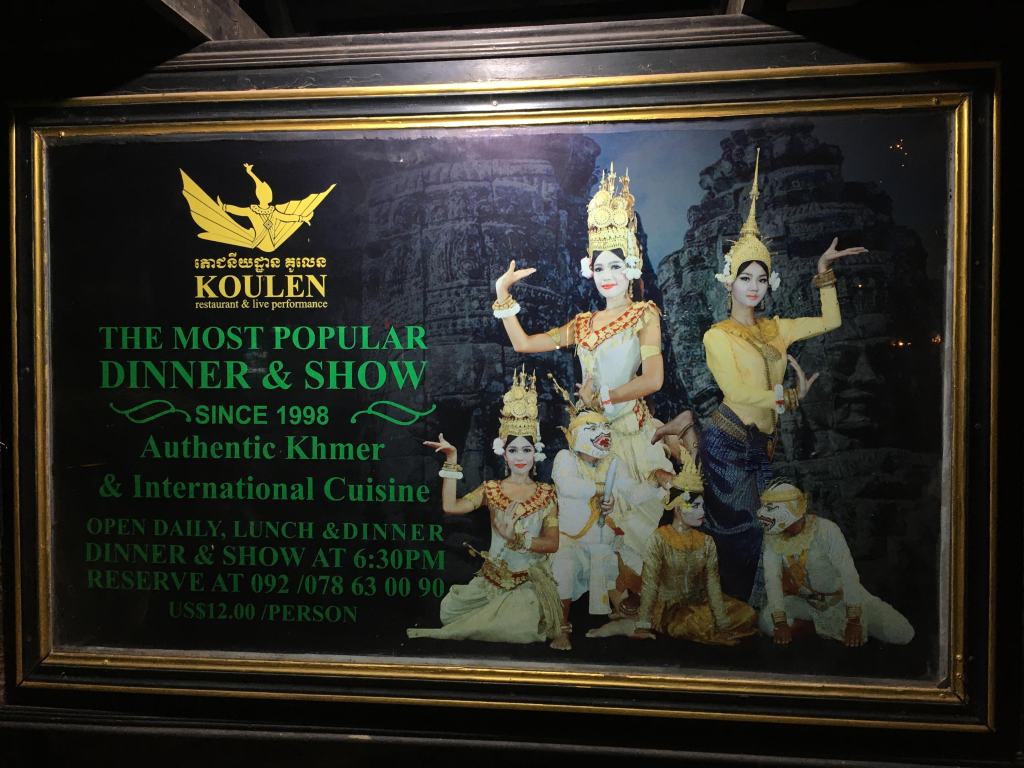 Koulen Restaurant is located on Sivatha Street in Siem Reap, Cambodia. Opposite Lucky Mall, near to National Road Number 6, offers a dinner show with a buffet.