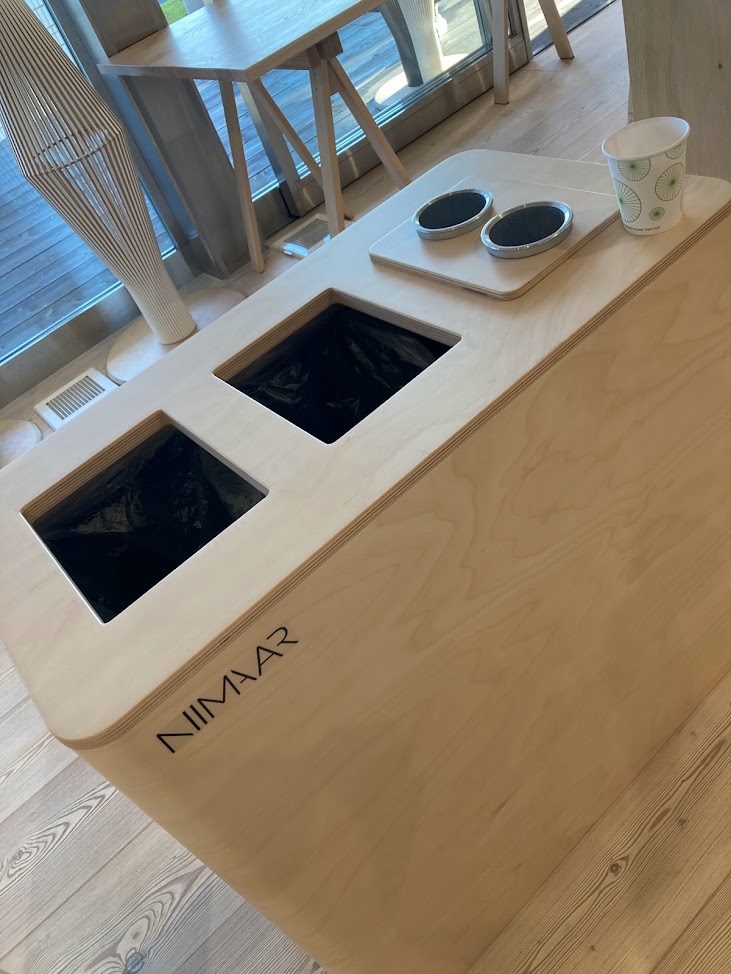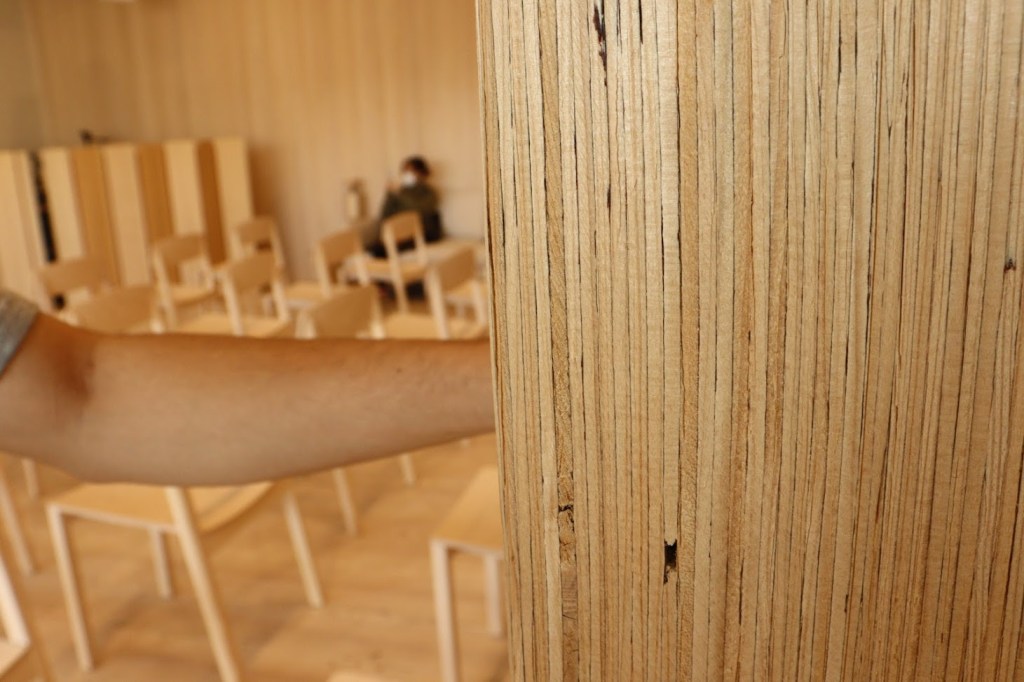 メッツァ・パビリオンの「メッツァ」は森を意味しており、施設に使われている主要建材はフィンランド製。椅子やソファはもちろん、スピーカーやゴミ箱までフィンランド製です。サステナブルに管理したフィンランドの森から生まれたもので、パビリオンの接続部は分解・移設後に再び組み立てられるように設計されたそうです。
