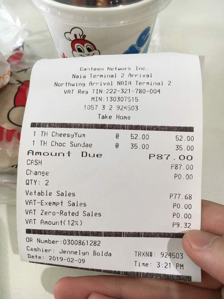 Jollibee is a fast food chain restaurant in the Philippines. There is a branch store in Ninoy Aquino Airport.